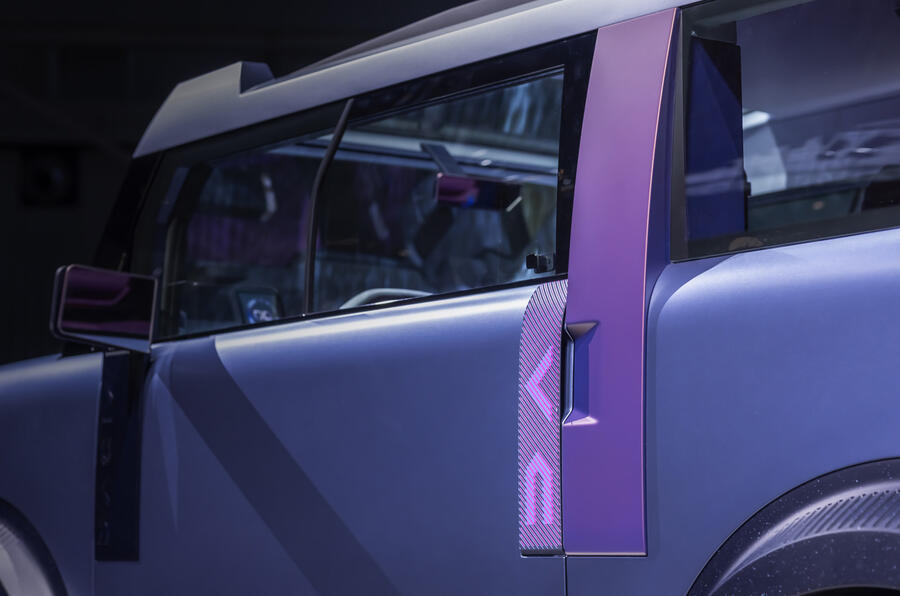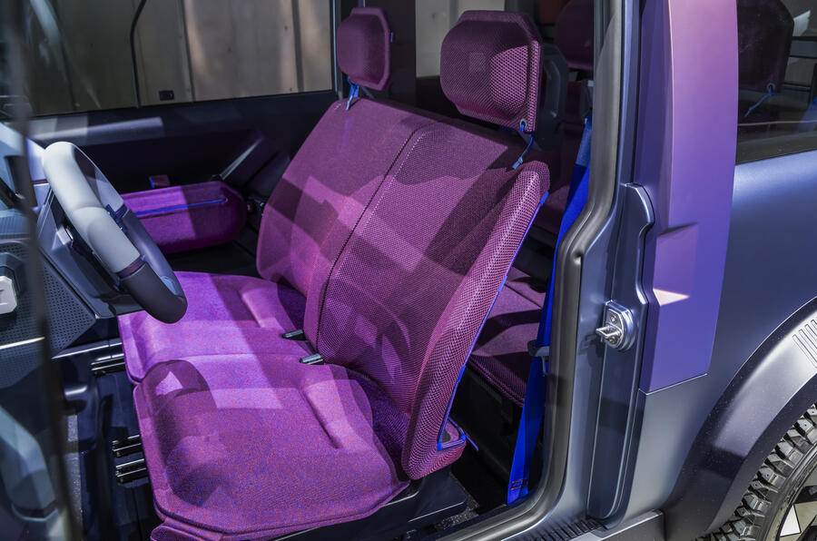 Meanwhile, the rear light clusters are mounted behind the upper portion of the split tailgate and so don’t need their own glass covers, while the exterior door handles have been replaced by a strap.